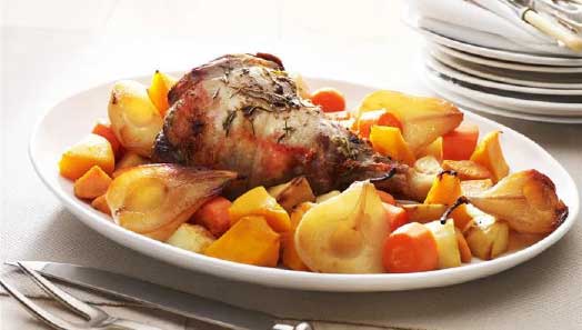 Prep Time: 30 minsCook Time: 120 minsServes: 6 Gluten Free / Dairy Free Ingredients 1 leg of lamb (approximately 1kg) 2 cloves garlic, crushed 1 tbs olive oil 3 tbs rosemary, chopped 3 pears, peeled, cored and halved 2 large potatoes, unpeeled, cut into chunks 1 sweet potato, peeled and cut into chunks 1/2 butternut … Read more